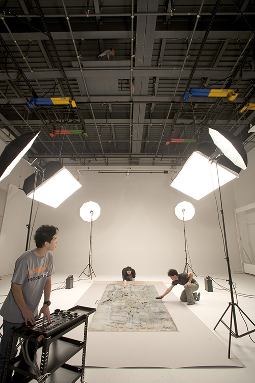 俯瞰撮影(被写体を真上から撮影すること)や斜俯瞰撮影も可能な本格スタジオ。文化資産をあらゆる角度から撮影することが可能です。